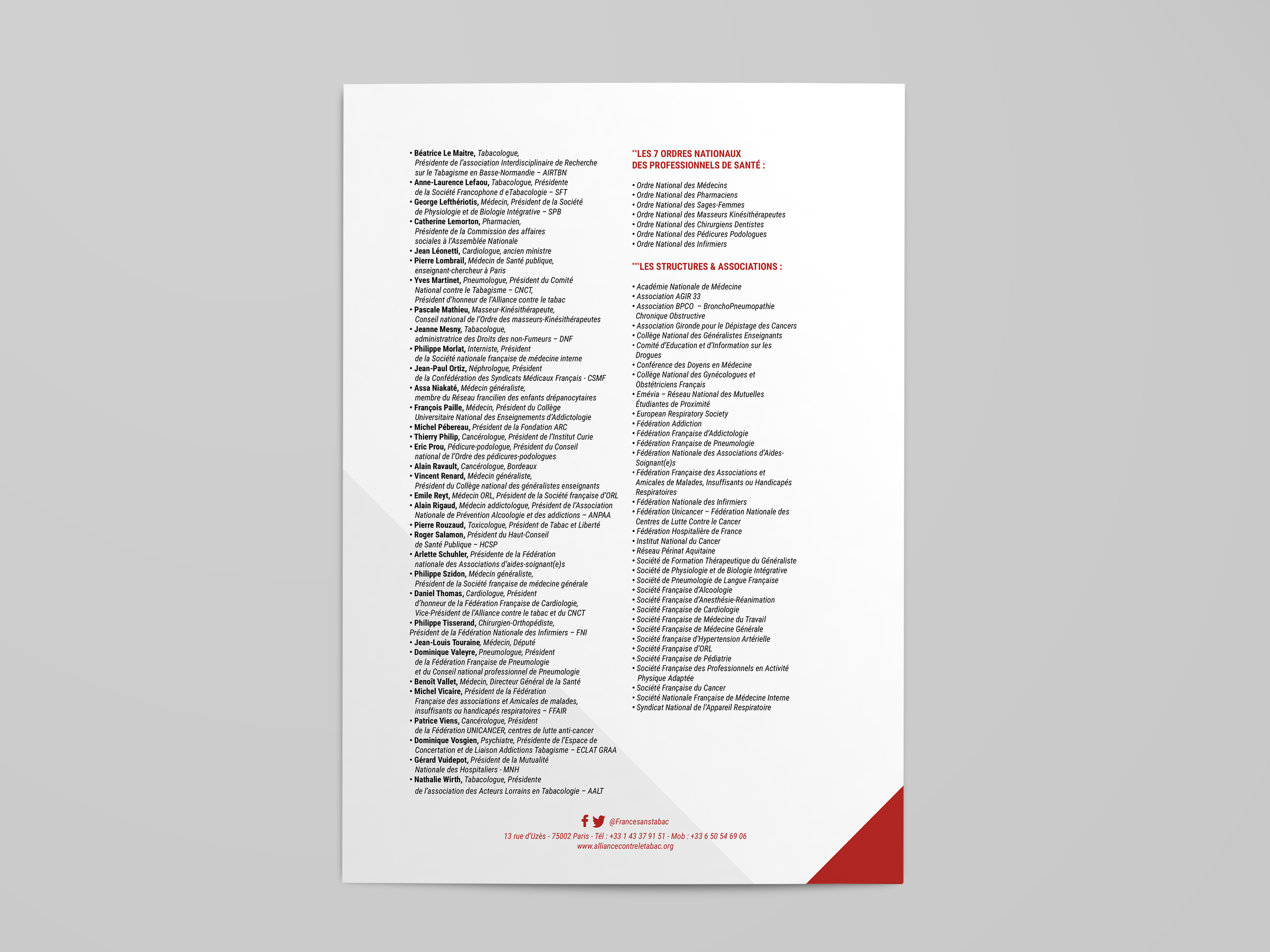 Infos : L'Alliance contre le tabac, association loi de 1901, est la fédération des acteurs de la lutte contre le tabac créée en 1991 à la suite de la promulgation de la loi Évin. L'Alliance rassemble en son sein une vingtaine de membres et personnalités menant une politique engagée dans la lutte contre le tabagisme.