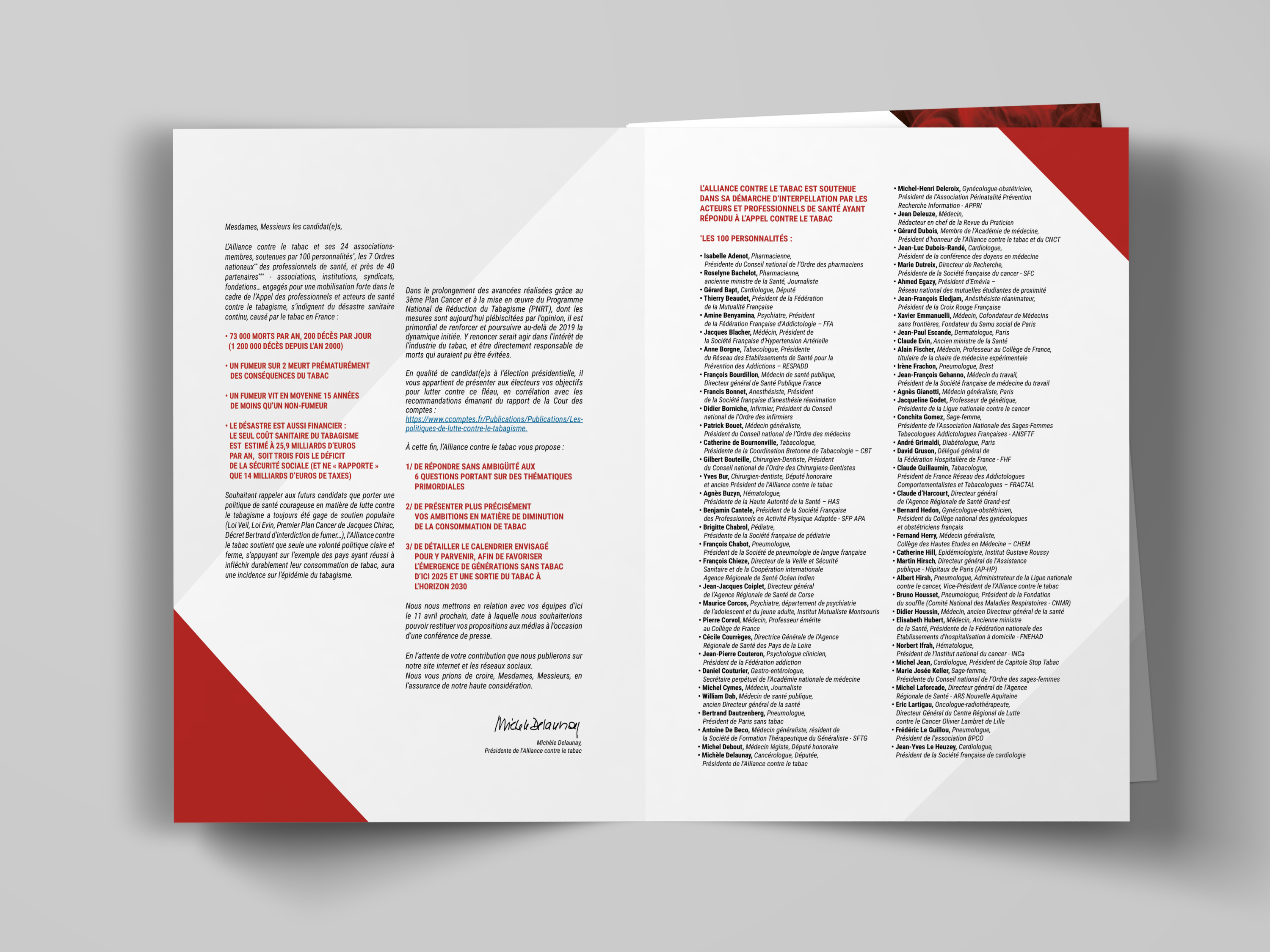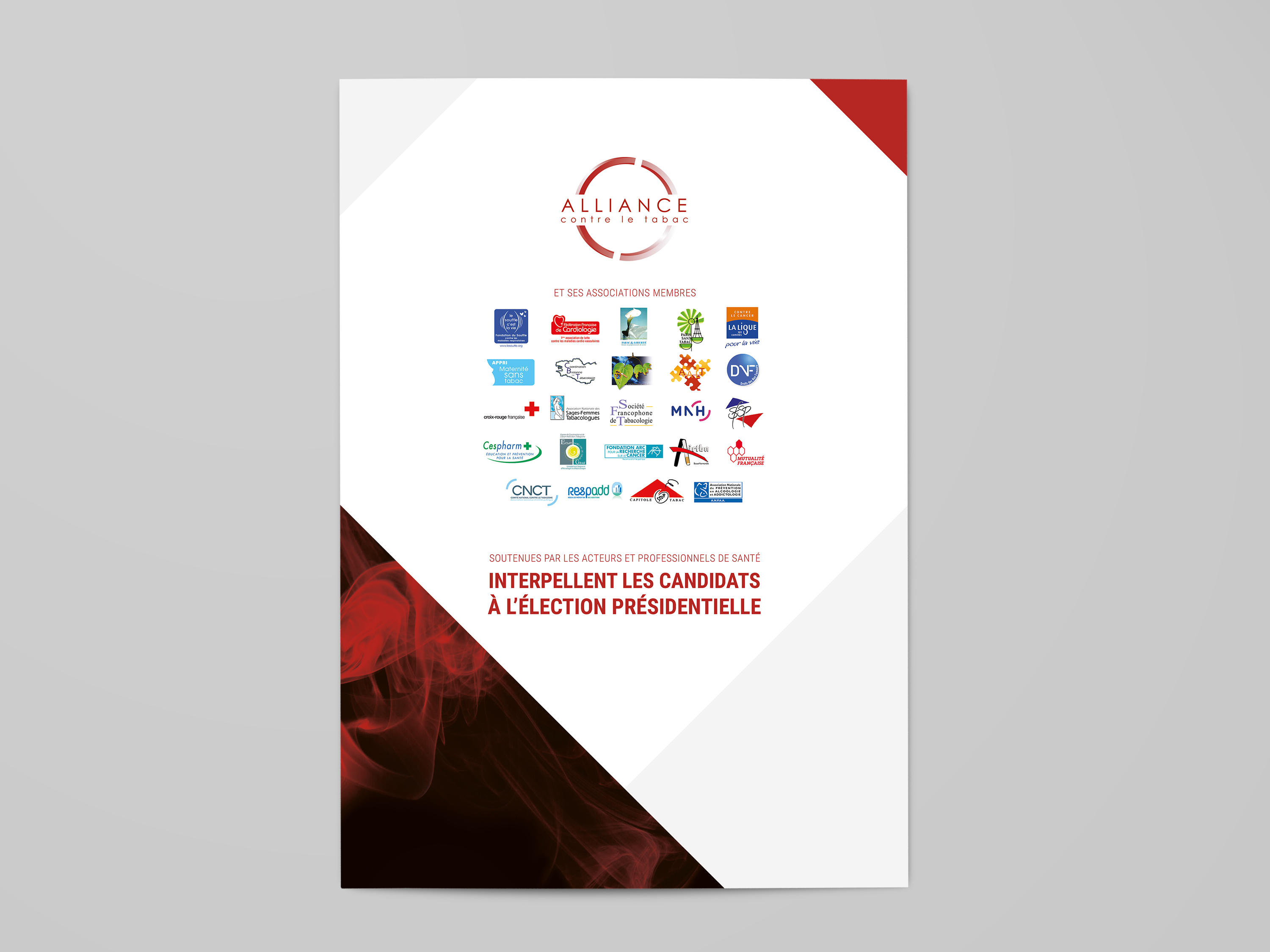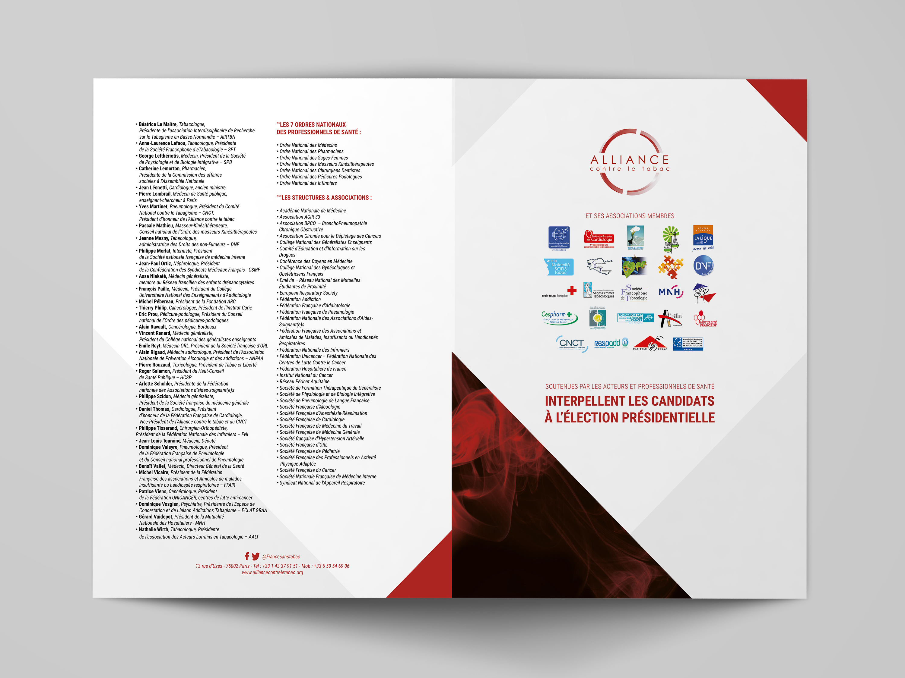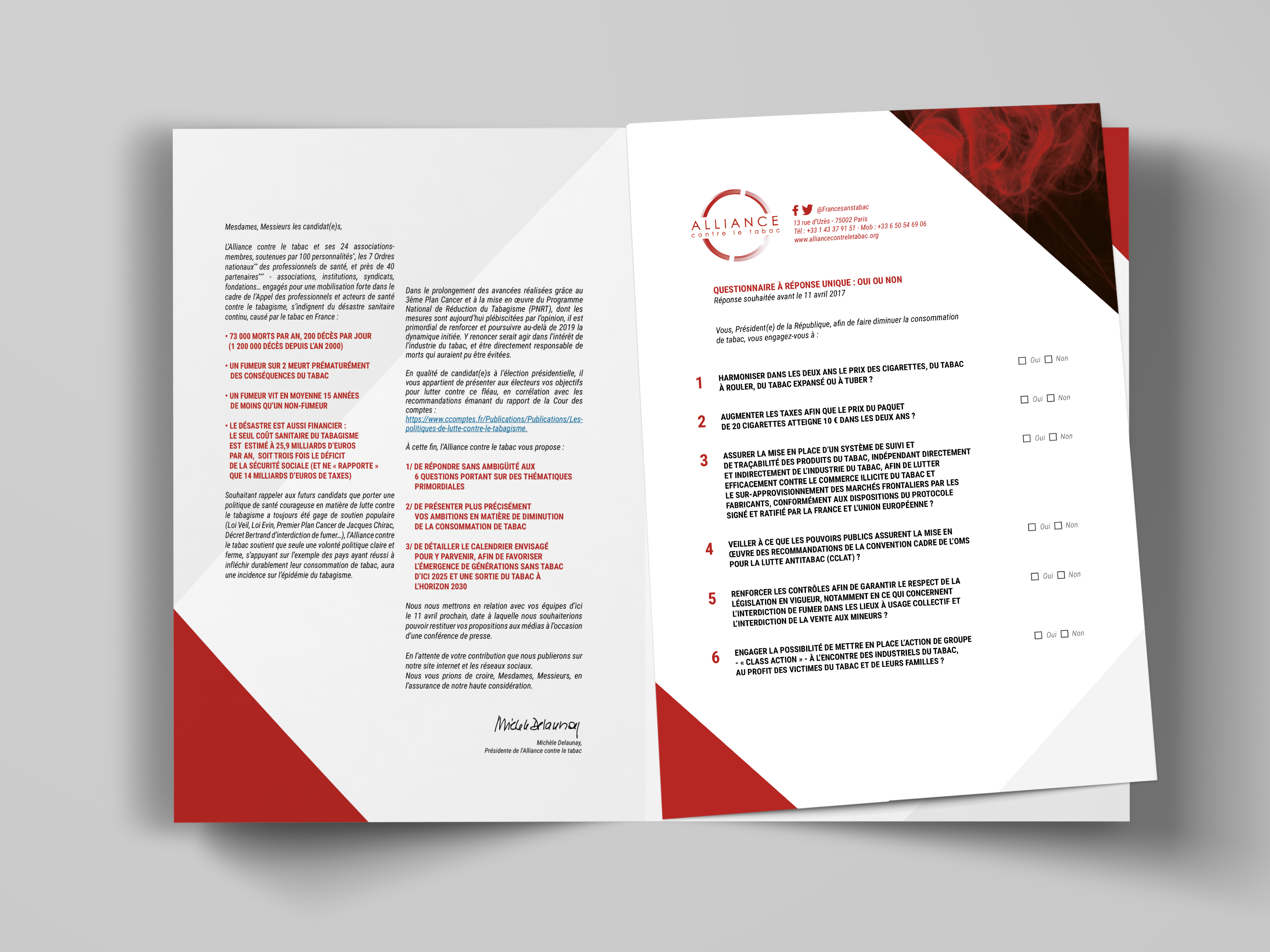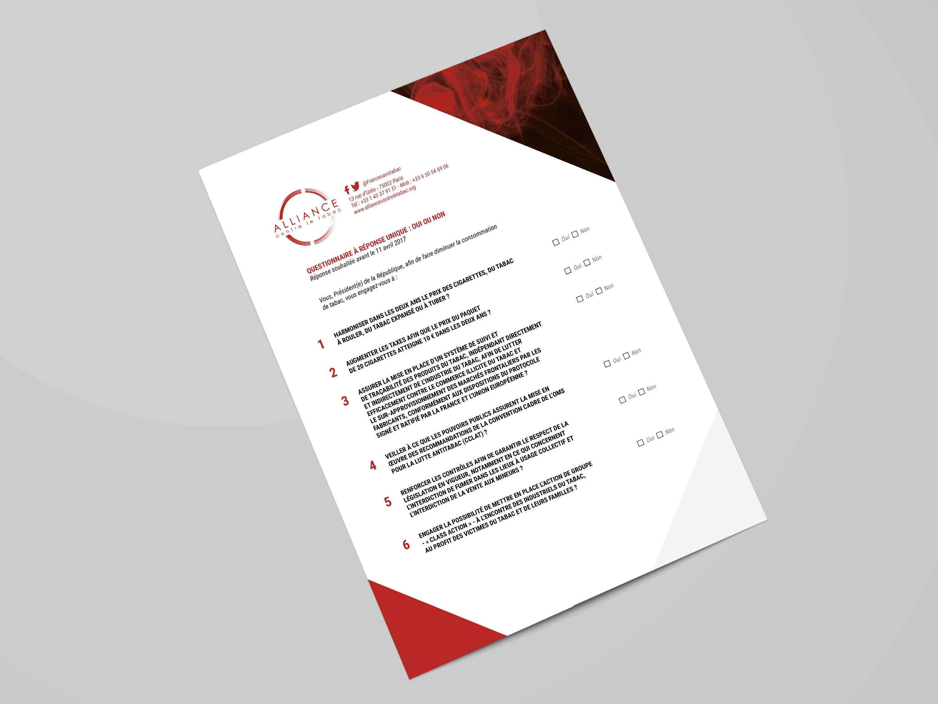Réalisation de la plaquette d'information / questionnaire d'information destinée aux candidats à la présidentiel sur l'engagement politique face au tabac.