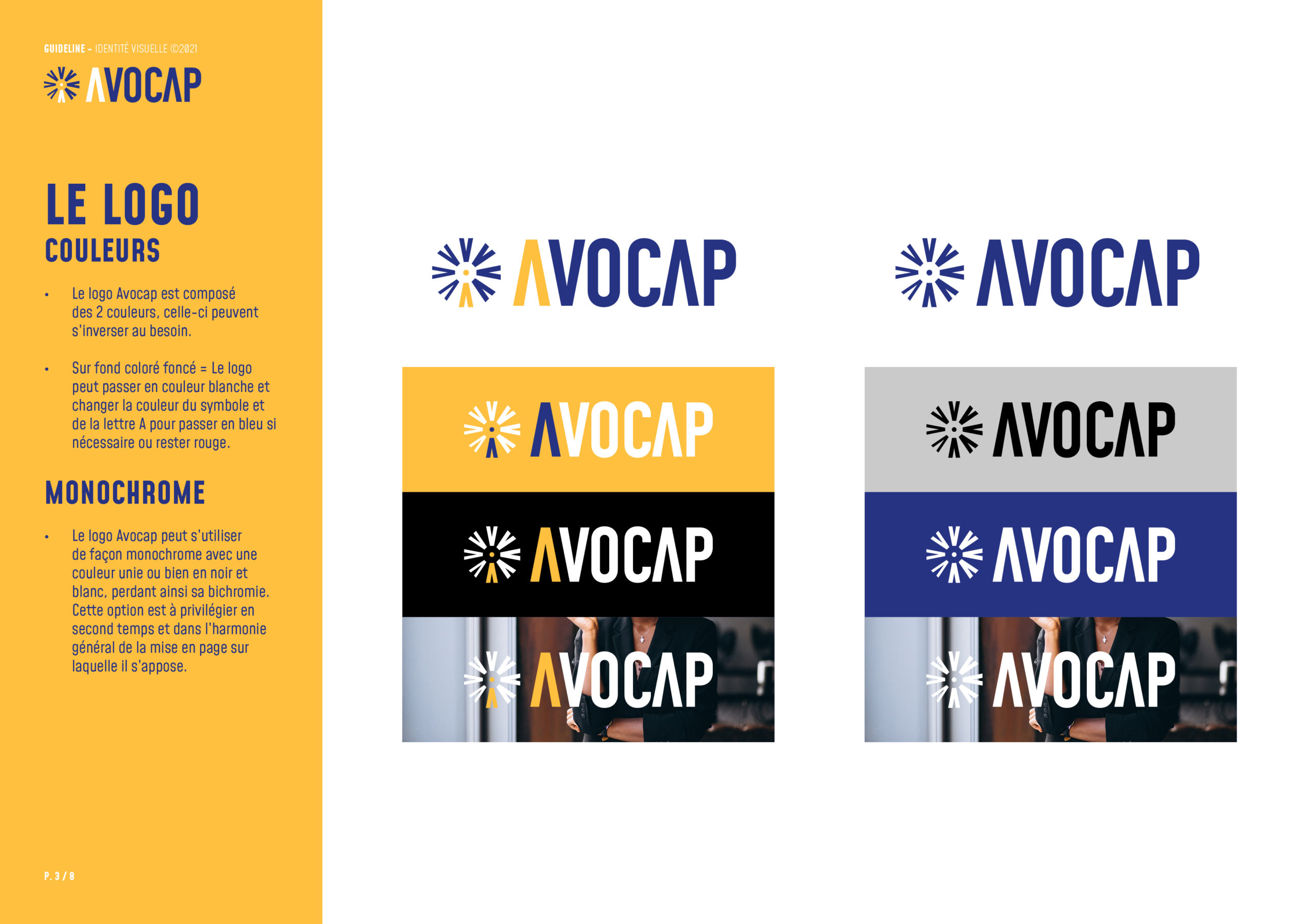 Réalisation du nouveau logo et charte graphique compléte d'Avocap, cabinet d'avocat basé sur Paris. Création du logo, déclinaisons d'éléments graphiques, cherche typographiques, guideline d'utilisation et adaptations bannières réseaux sociaux.