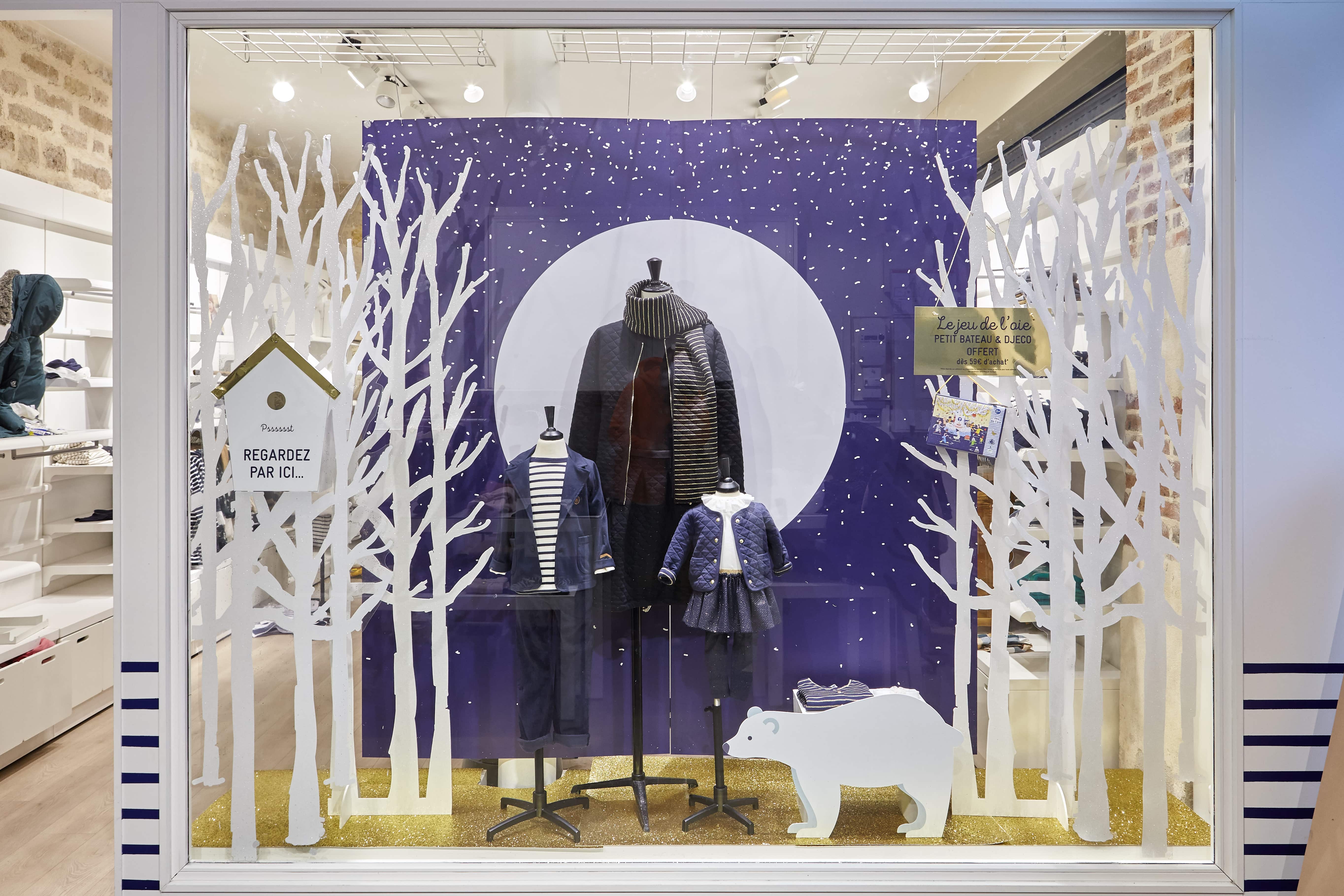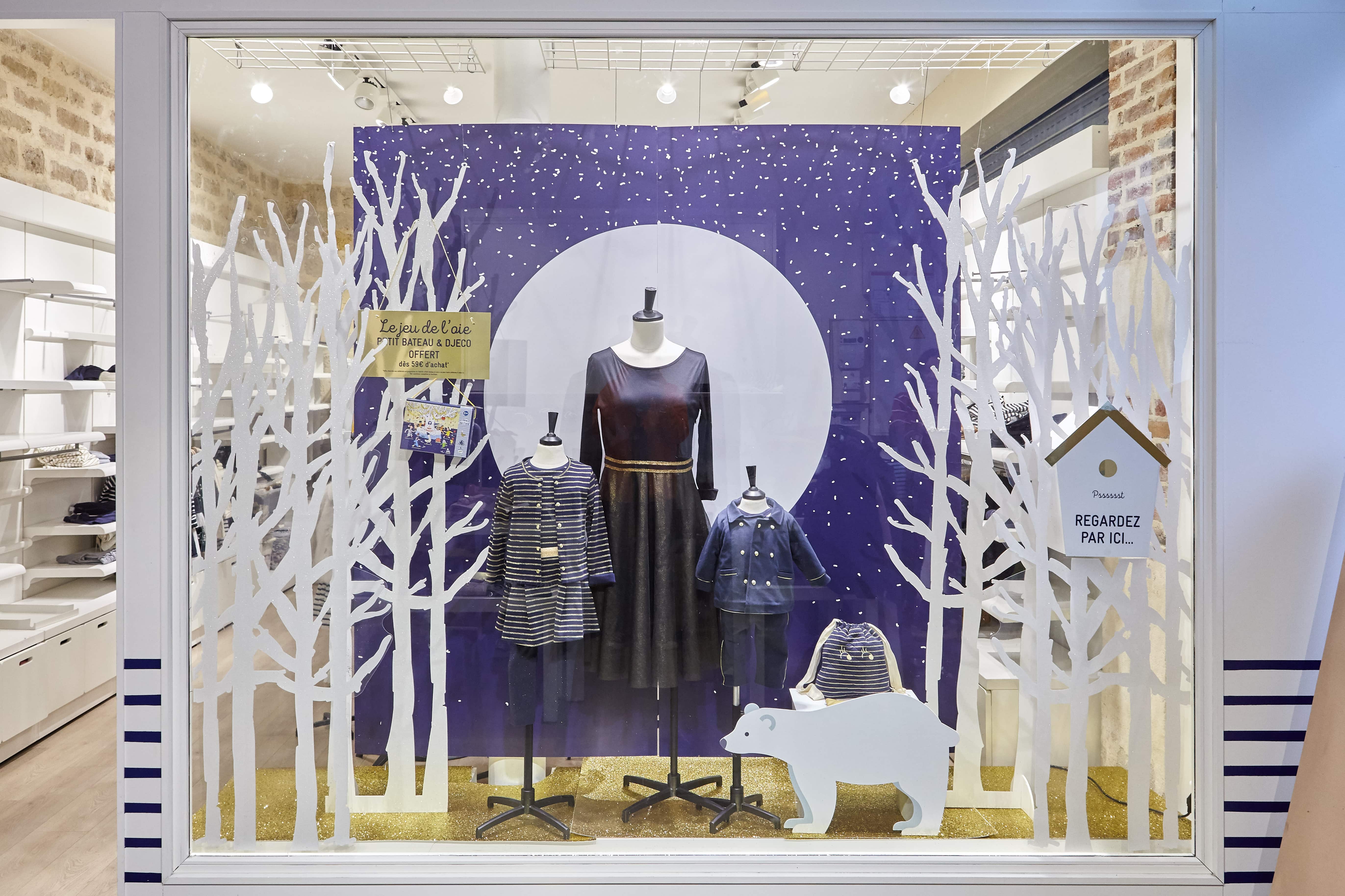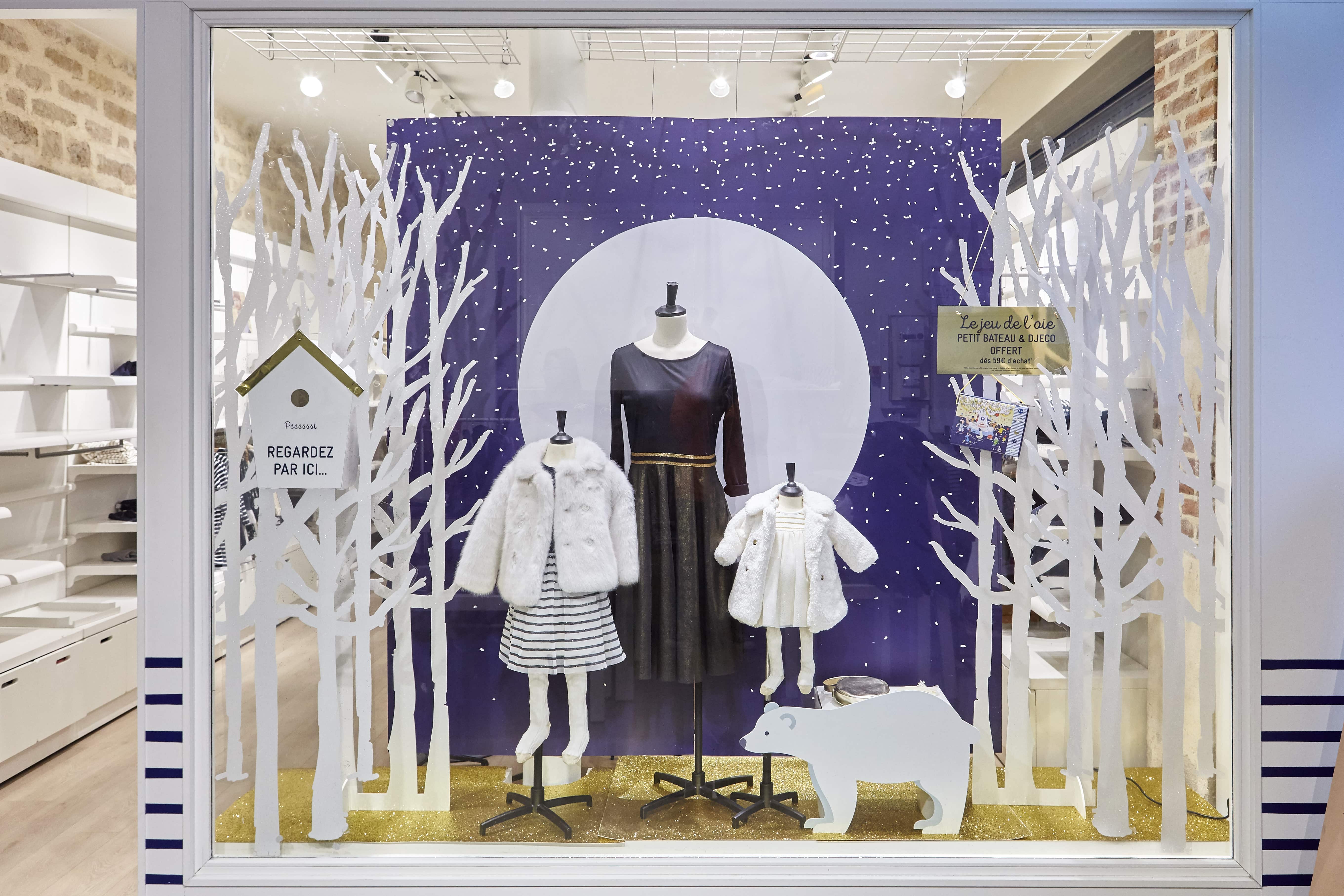 Réalisation de la vitrine sur-mesure, l'espace retail interieur du réseau pour la collection Noël 2018.